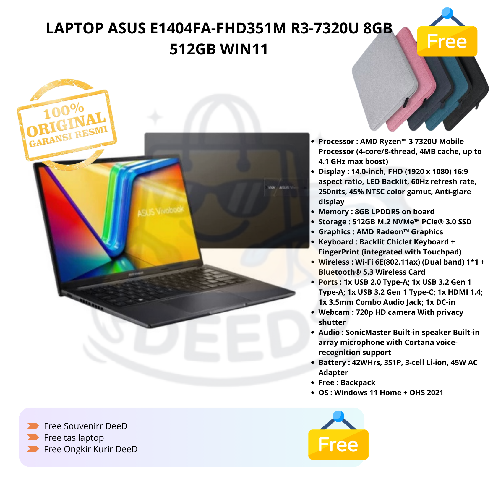 LAPTOP ASUS E1404FA-FHD351M R3-7320U 8GB 512GB WIN11
