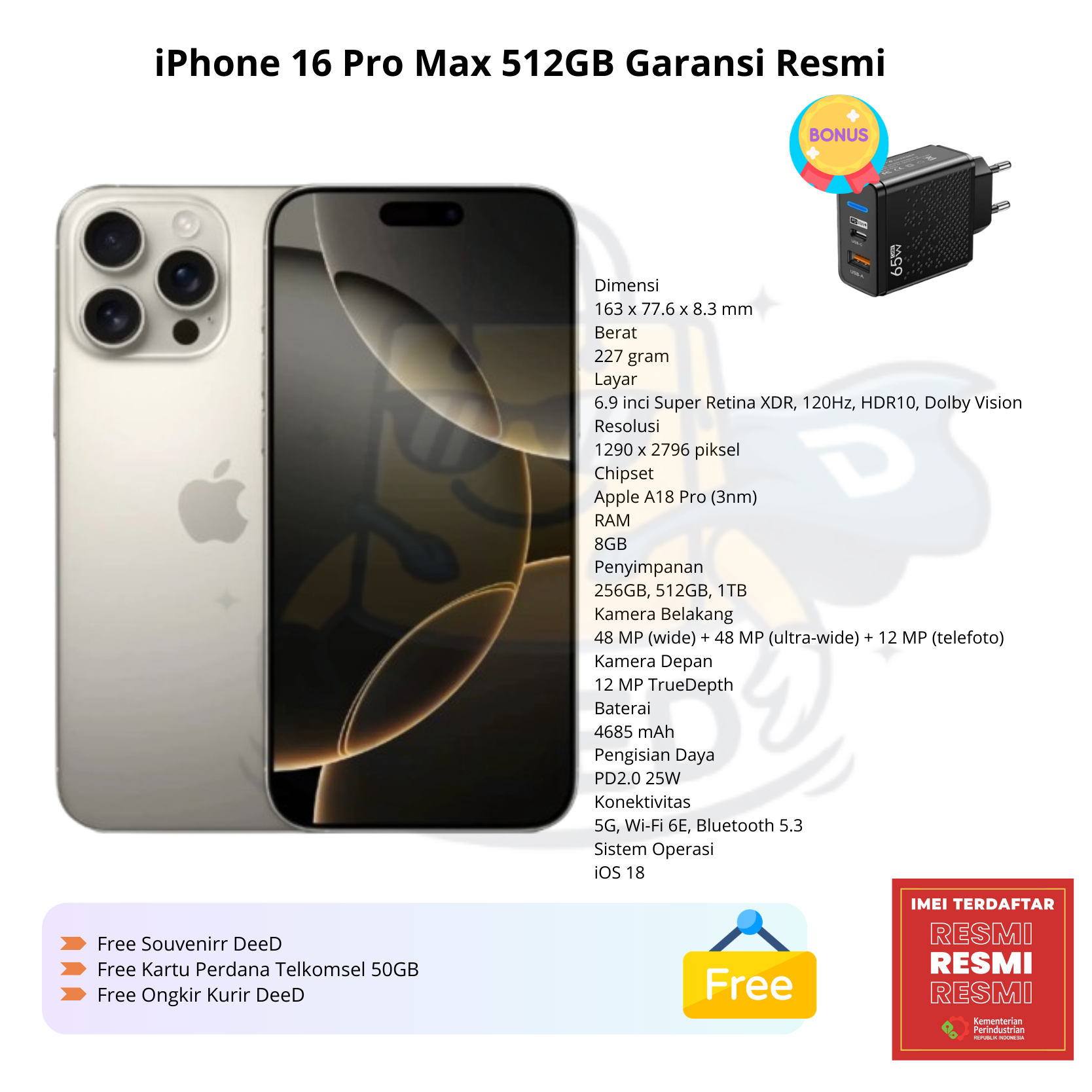 iPhone 16 Pro Max 512GB Garansi Resmi