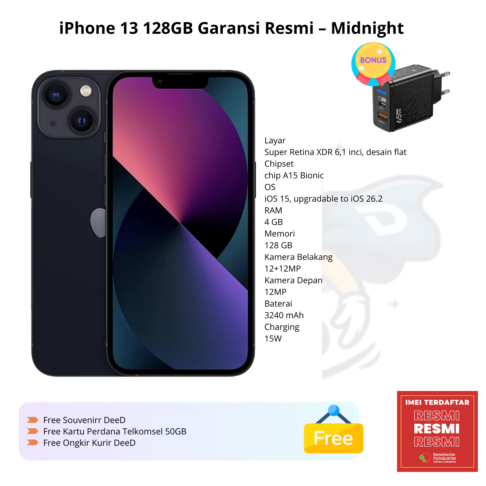 iPhone 13 128GB Garansi Resmi – Midnight