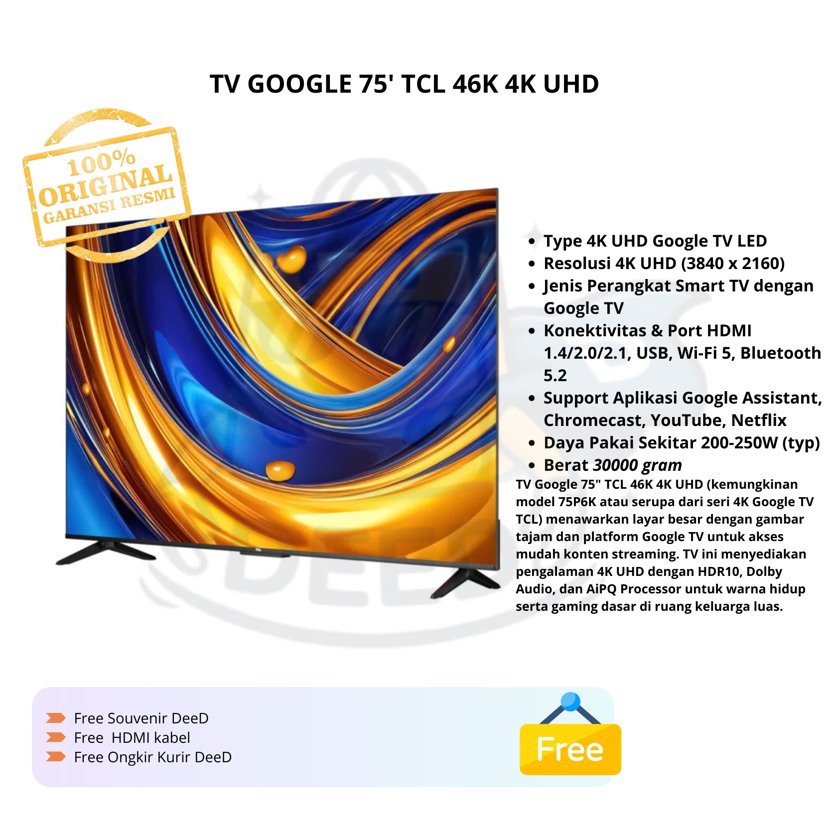 TV GOOGLE 75? TCL 46K 4K UHD
