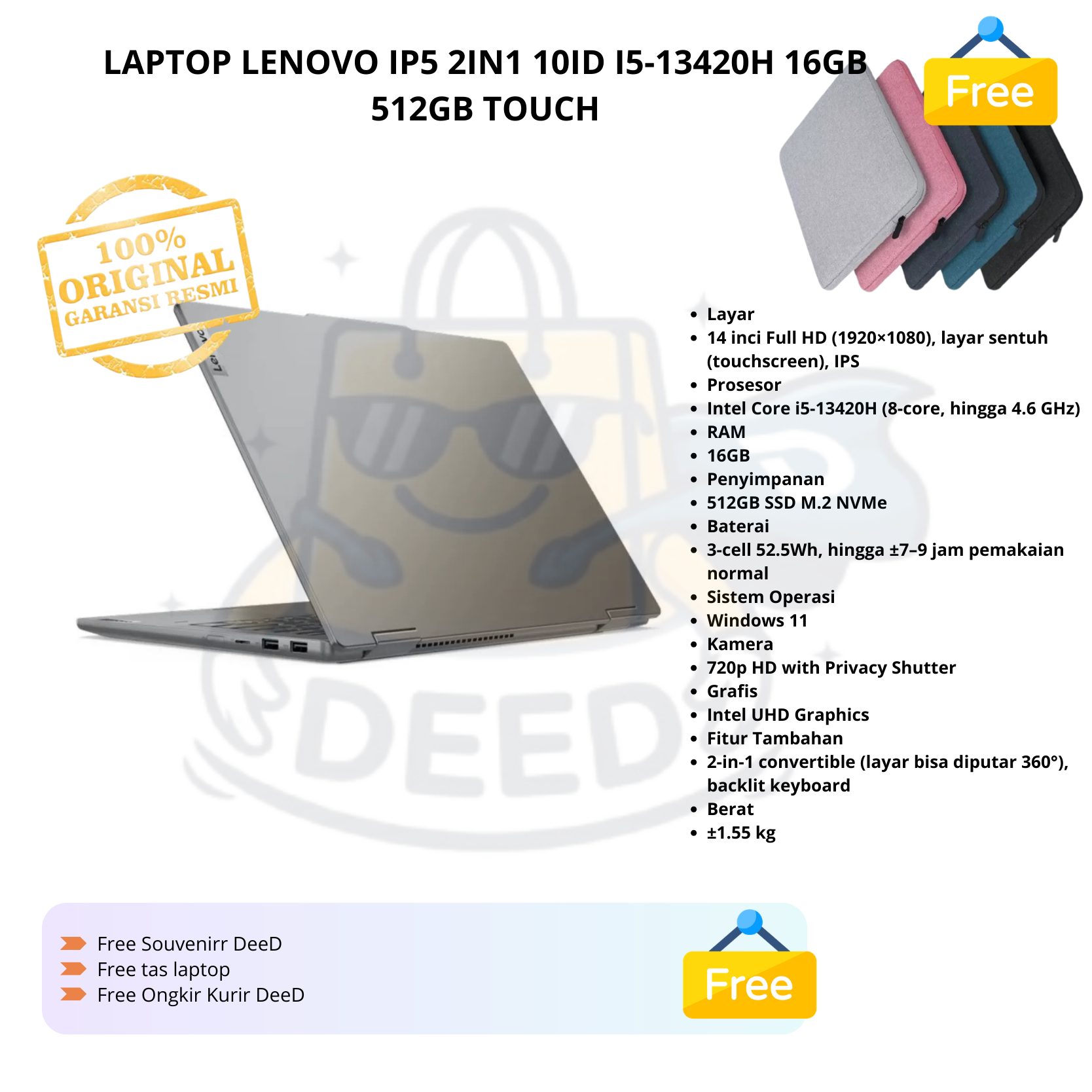LAPTOP LENOVO IP5 2IN1 10ID I5-13420H 16GB 512GB TOUCH