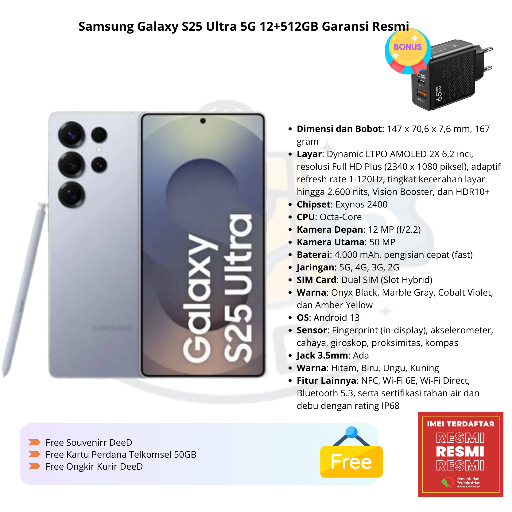 Samsung Galaxy S25 Ultra 5G 12+512GB Garansi Resmi