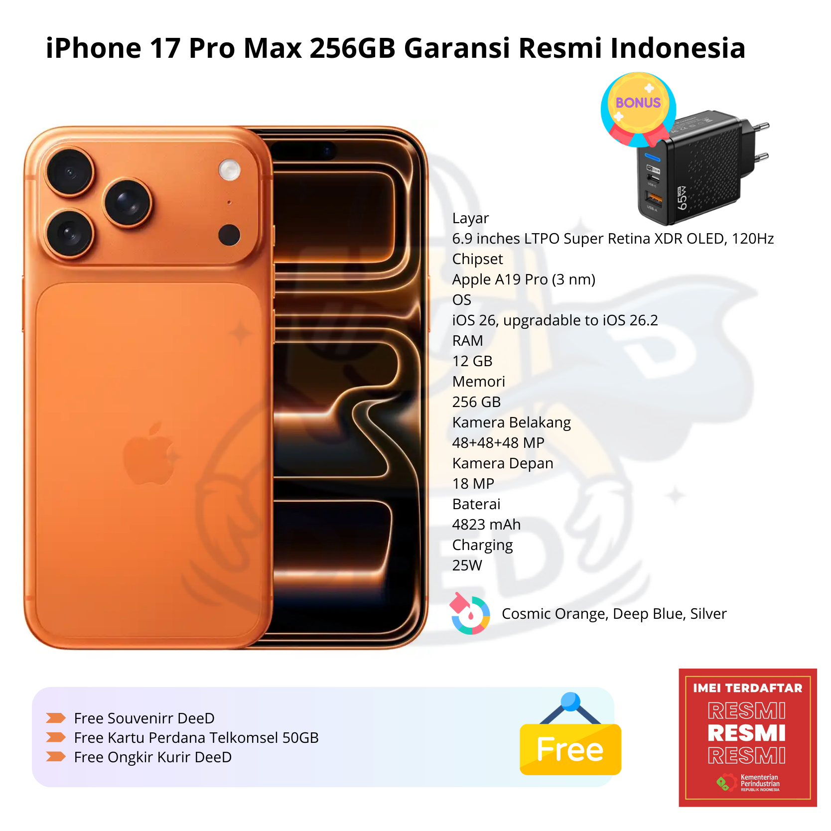 iPhone 17 Pro Max 256GB Garansi Resmi Indonesia