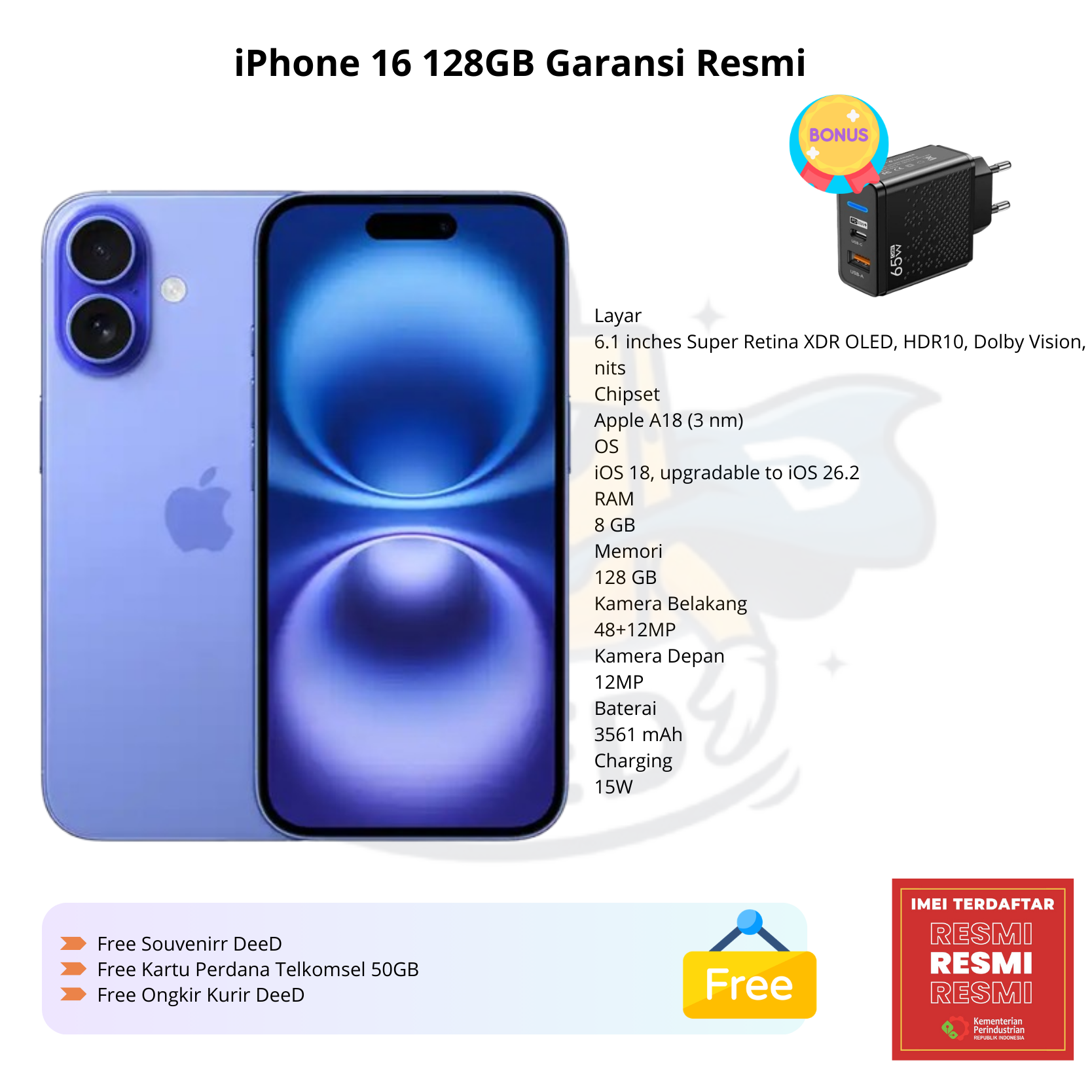iPhone 16 128GB Garansi Resmi