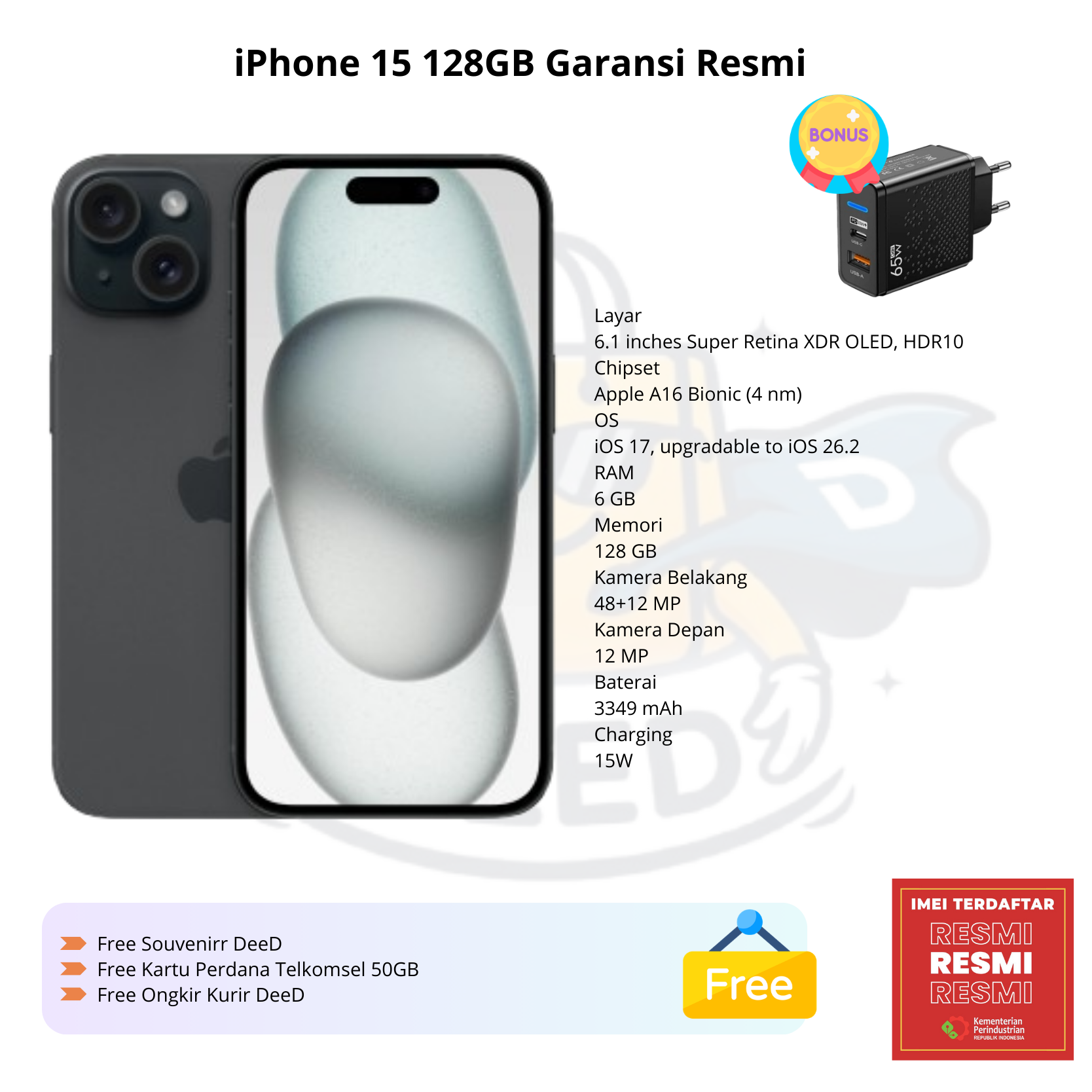 iPhone 15 128GB Garansi Resmi