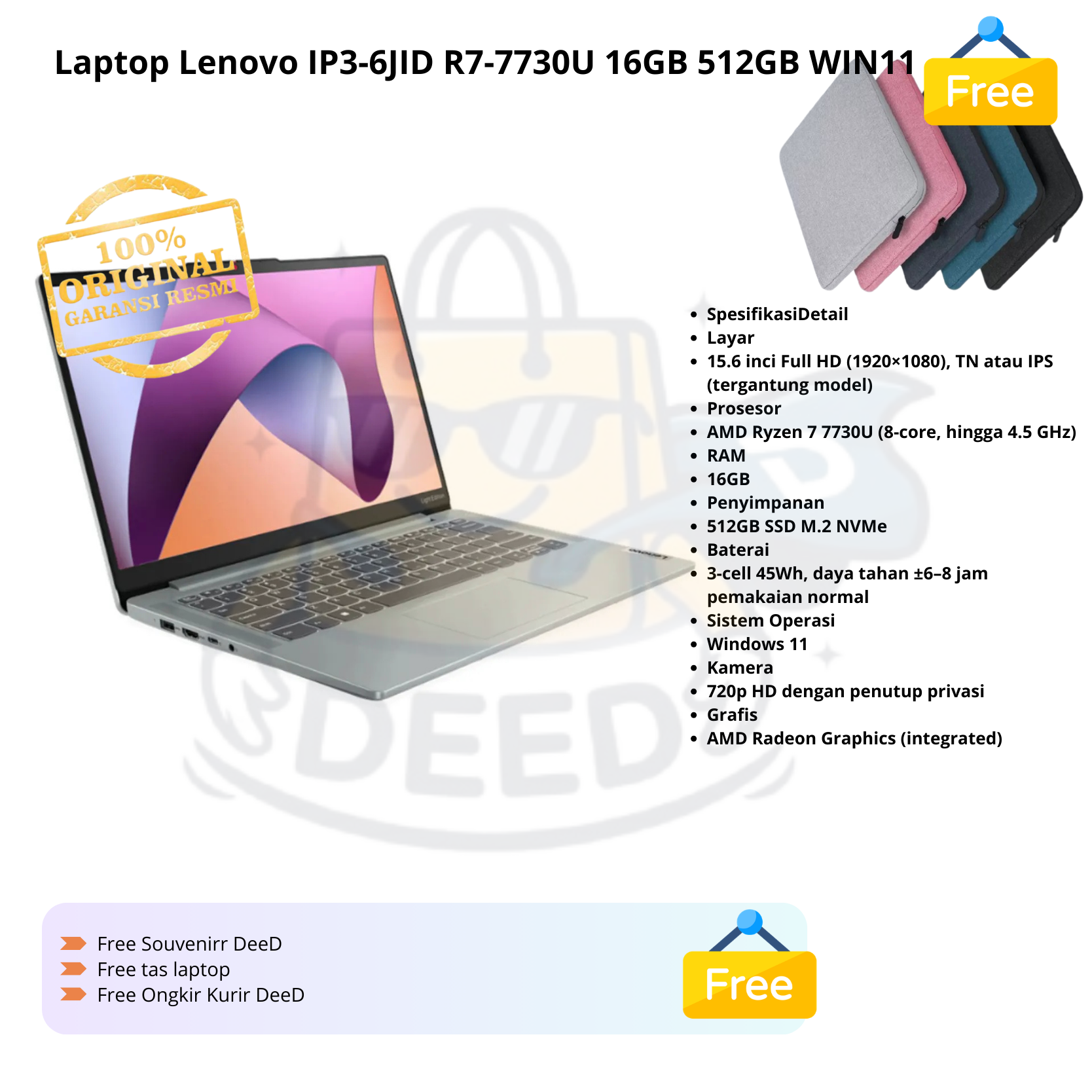 Laptop Lenovo IP3-6JID R7-7730U 16GB 512GB WIN11