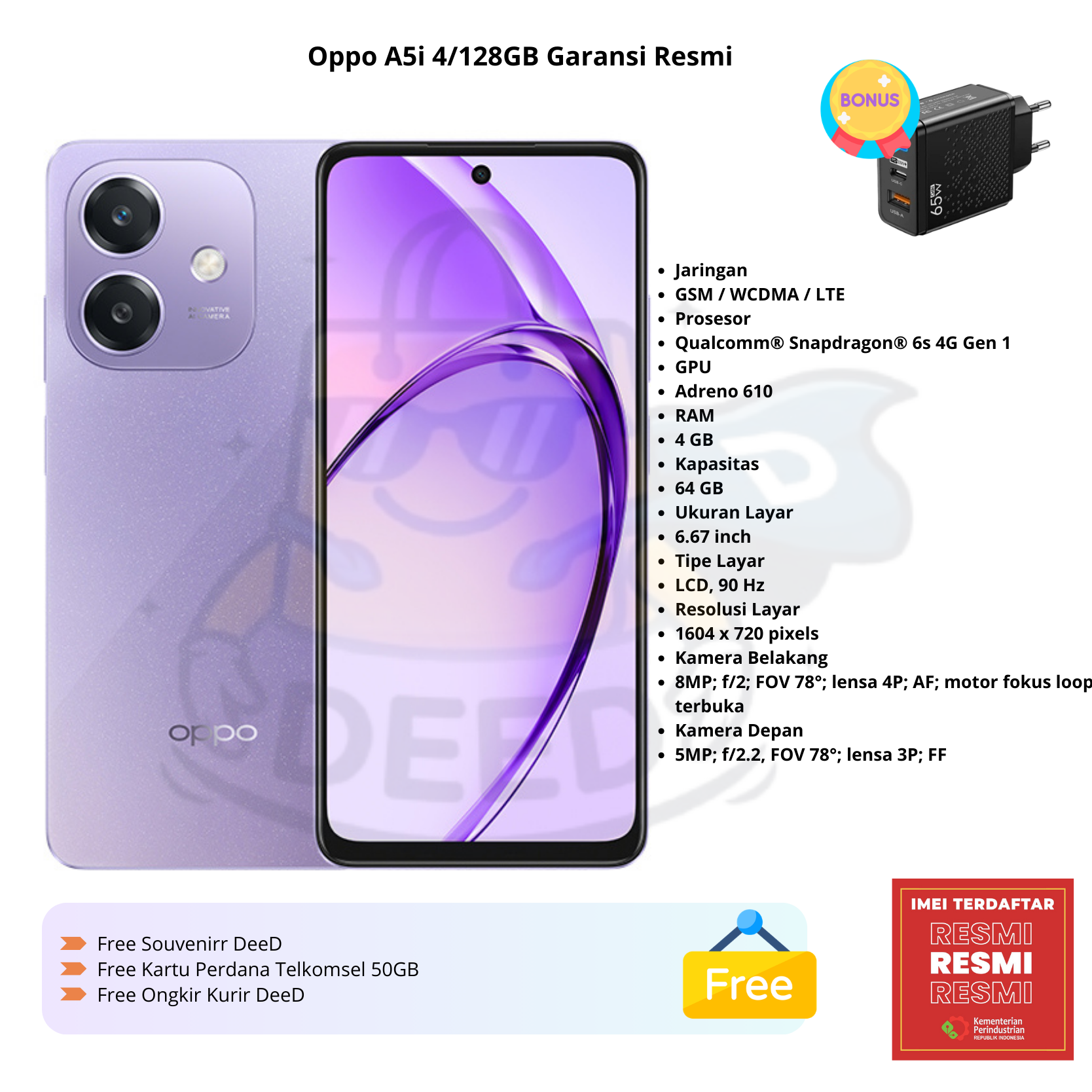 Oppo A5i 4/128GB Garansi Resmi