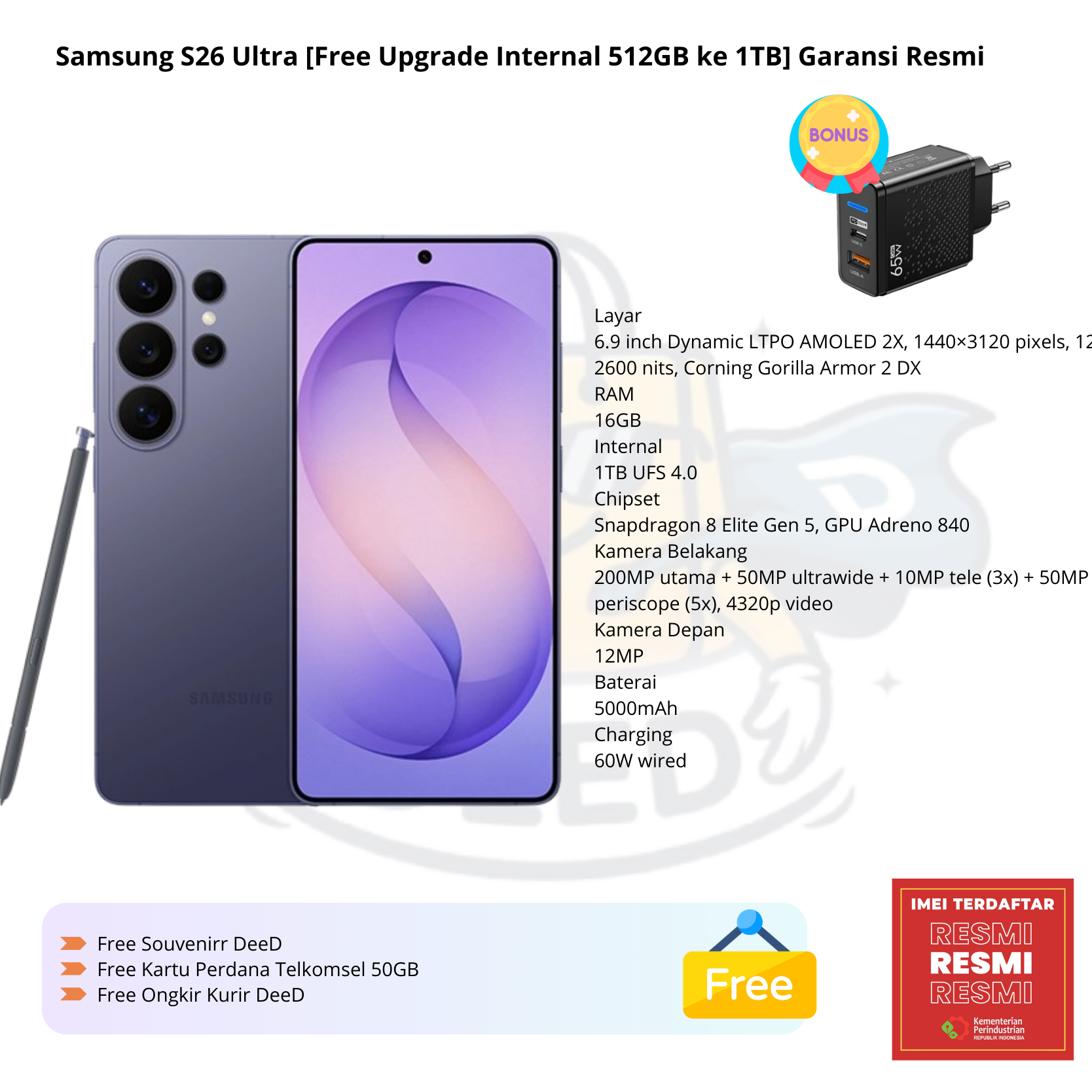 Samsung S26 Ultra [Free Upgrade Internal 512GB ke 1TB] Garansi Resmi