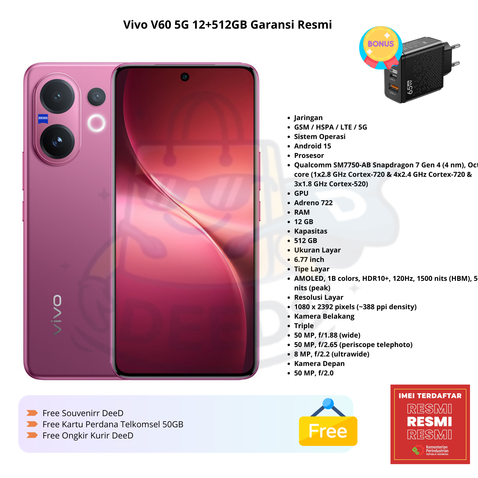 Vivo V60 5G 12+256GB Garansi Resmi