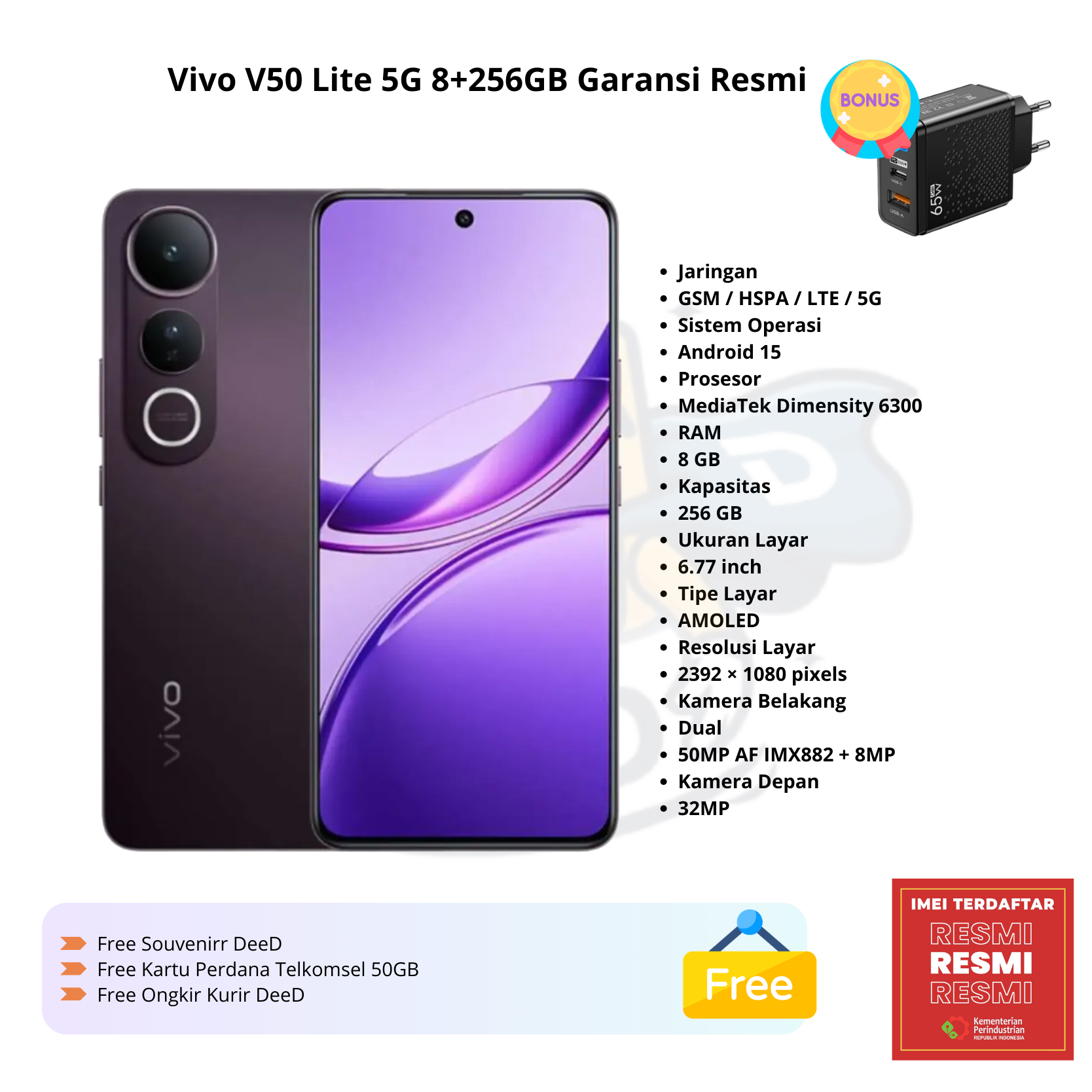 Vivo V50 Lite 5G 8+256GB Garansi Resmi